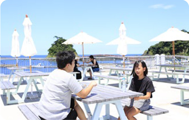 若狭湾と若狭富士を一望できる潮風テラス。