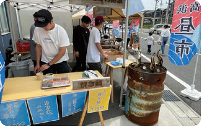 ○ 昼市同時開催…定例イベント昼市の限定総菜や鉄板焼きが登場。
