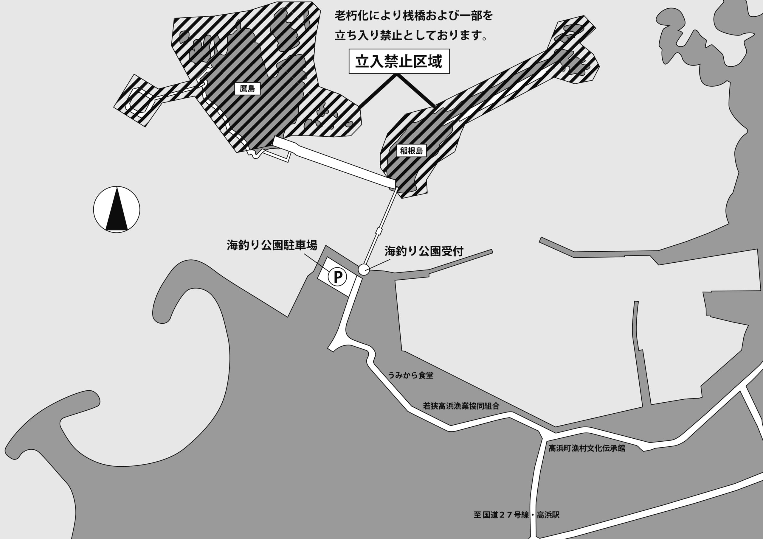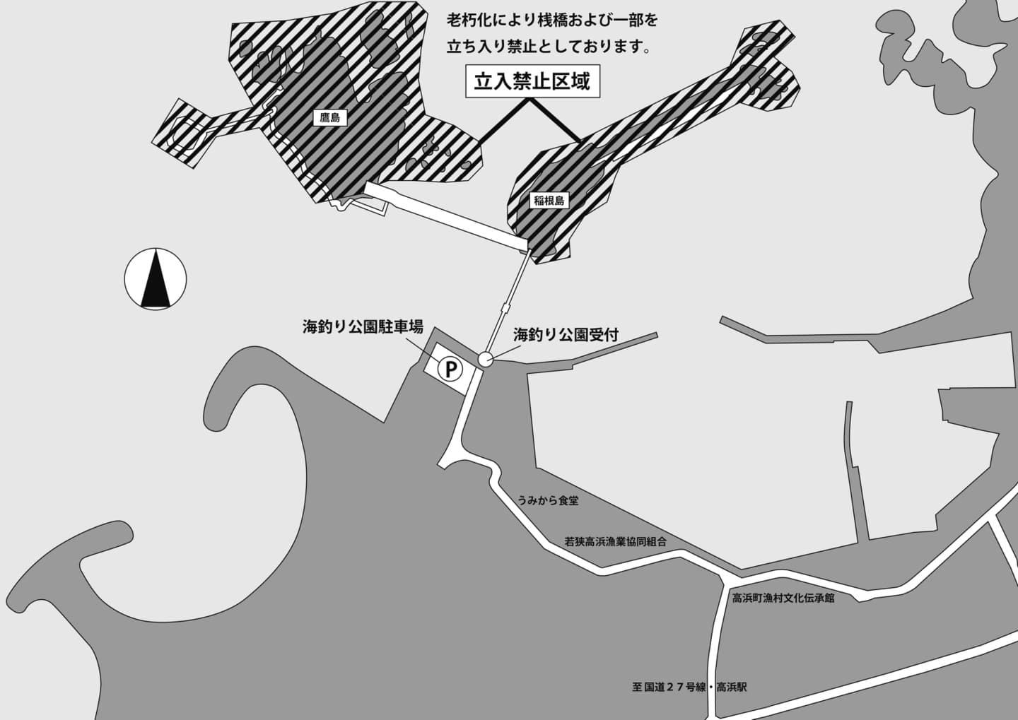 老朽化により桟橋および一部を立ち入り禁止としております。ご了承ください。